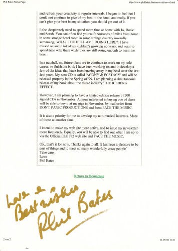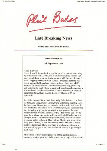Offizielles Statement auf Phils Homepage vom 09.09.1998 (nicht Teil des Newsletters):